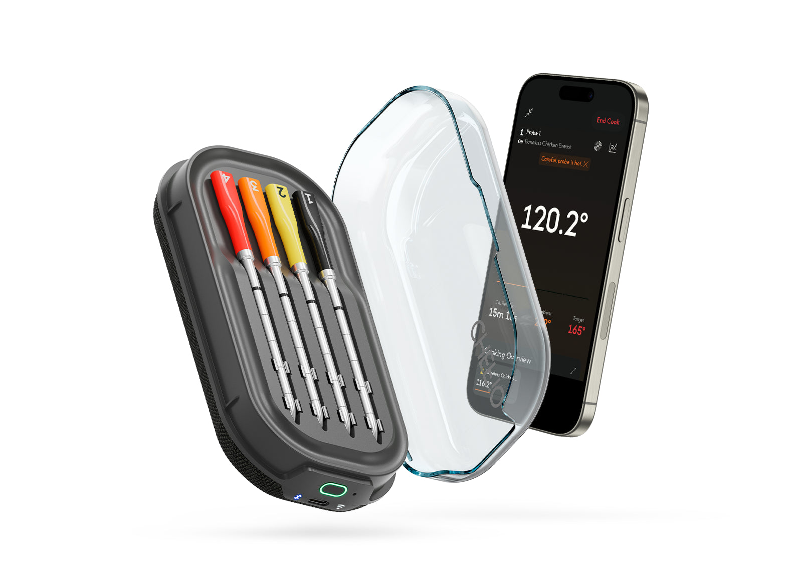 The CHEF iQ is just a great wireless probe thermometer…It has built-in WiFi, so I always have a connection. It has great Bluetooth range when there’s no internet available. The ambient sensor is accurate in stable temperature environments…