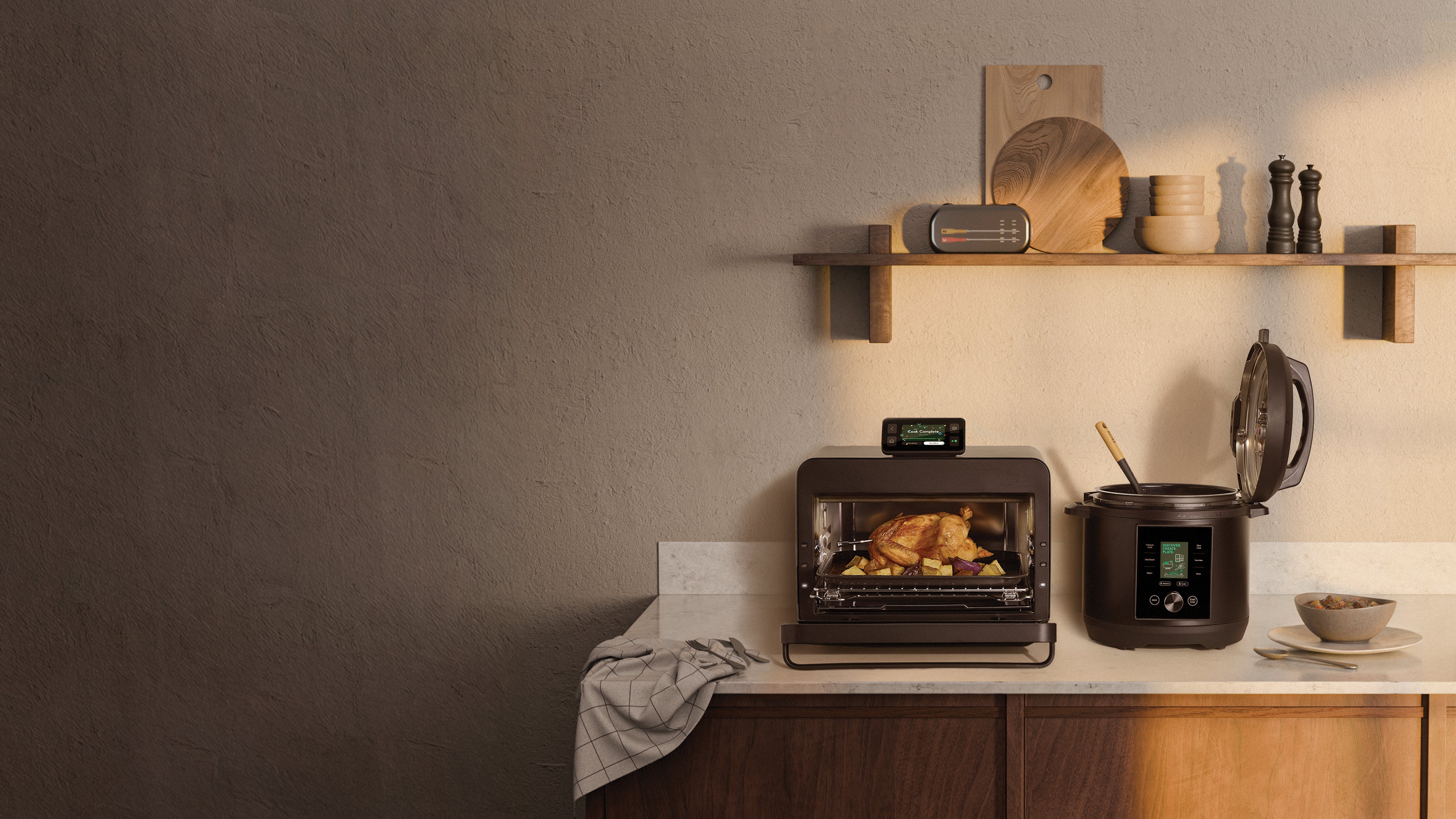 Cualquiera con un conocimiento básico de un smartphone encontrará la pantalla del CHEF iQ muy fácil de usar, y a quienes tengan un smartphone les encantará poder controlarlo a distancia. Funciones adicionales como la báscula integrada y las recetas en la app chefiqlogotype hacen que esta olla a presión sea aún más completa.