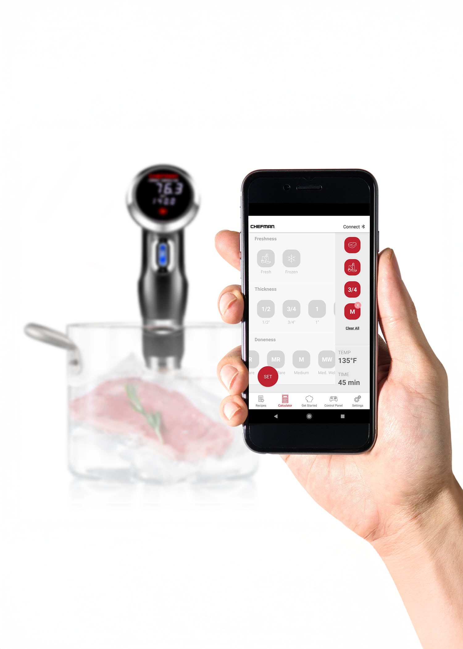 Todo empezó con una cocina sous vide inteligente. Bajo la marca Chefman, este producto tomó forma y se lanzó con su propia aplicación para smartphones y tutoriales de cocina guiados, sentando las bases de CHEF iQ.