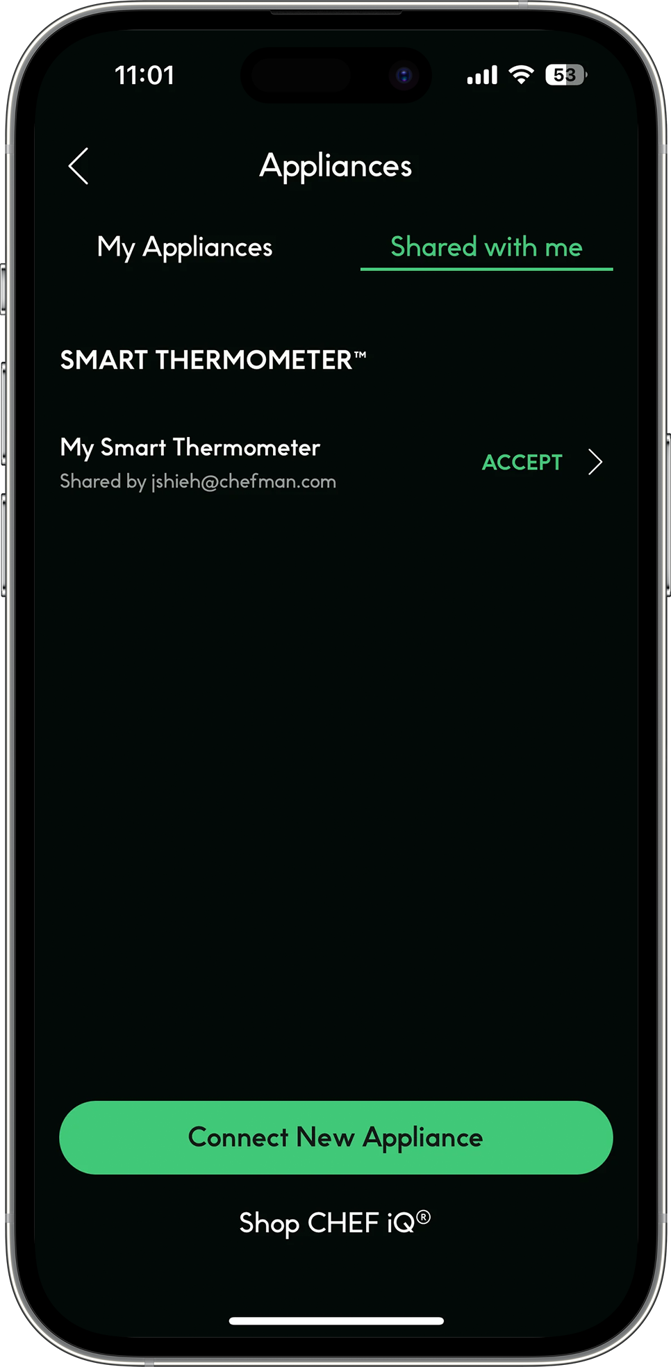 After accepting an invitation to share an appliance, you can start cooking sessions for that appliance in Cook Control.