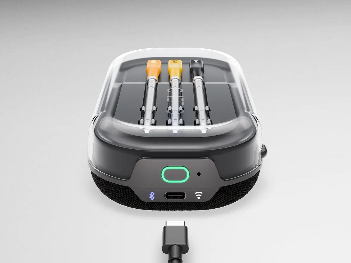 The Smart Hub wirelessly charges your iQ Sense probes and recharges via USB-C. It's also a Wi-Fi base station, so you can monitor your food from anywhere, and includes a speaker for real-time audible alerts.